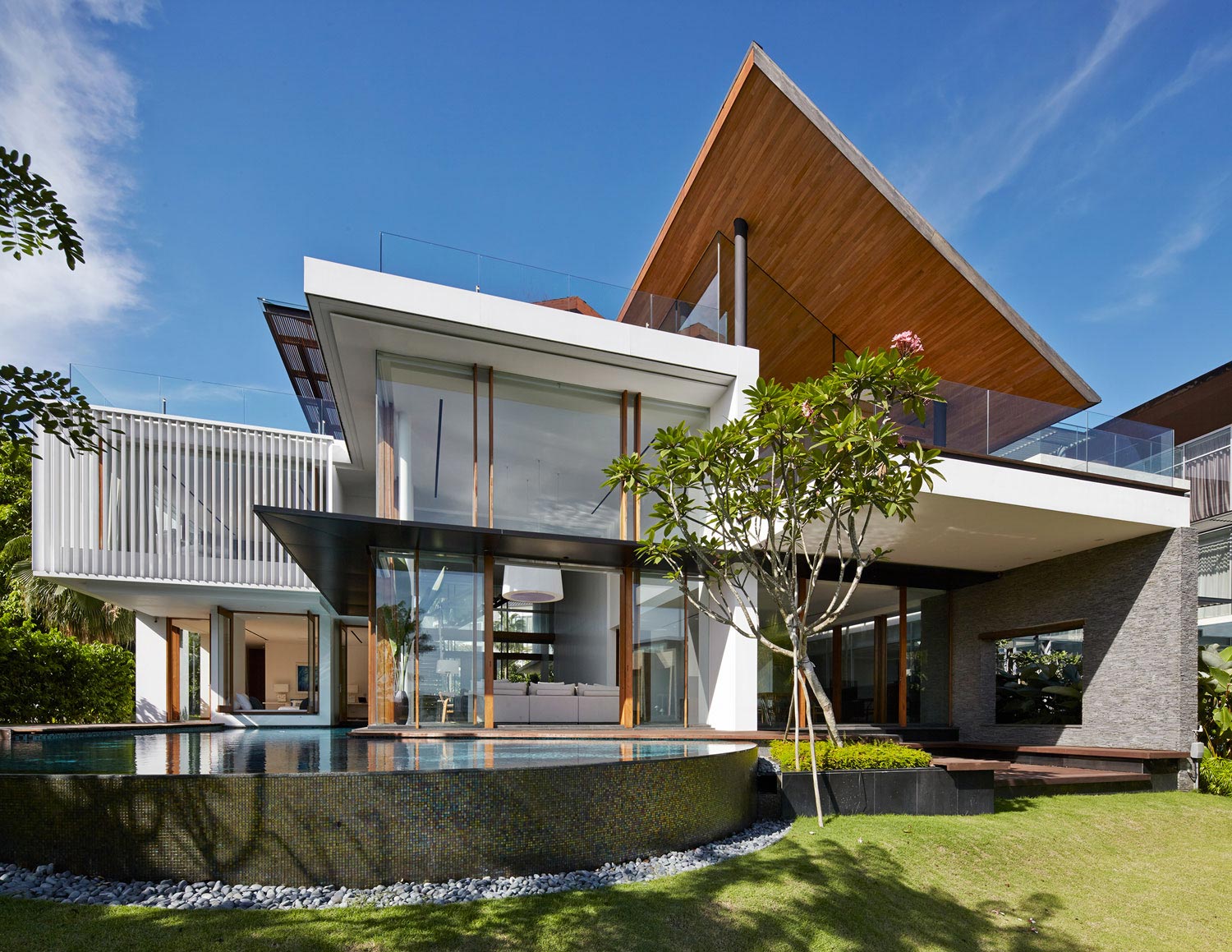 โLocated in Singaporeโs luxury seaside residential enclave of Sentosa Cove, the clean lines of the exterior facade of this home belie the air of casual sophistication of the interior. Commissioned by an industrialist based in China, the house is designed to capture the natural elements and provide a resort-like yet homely holiday retreat for a multi-generational family.