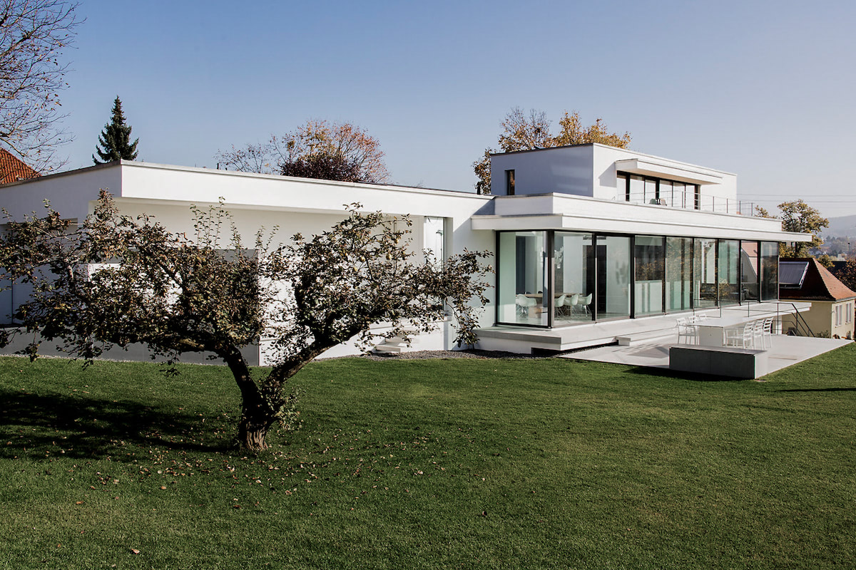 On a very long and narrow plot of land at the foot of the Swabian Alb, Southern Germany, a home was to be designed for a family with a great passion for art and graphic design, being publishers themselves. The building should offer areas for family life and at the same time express the open and creative way of the family.